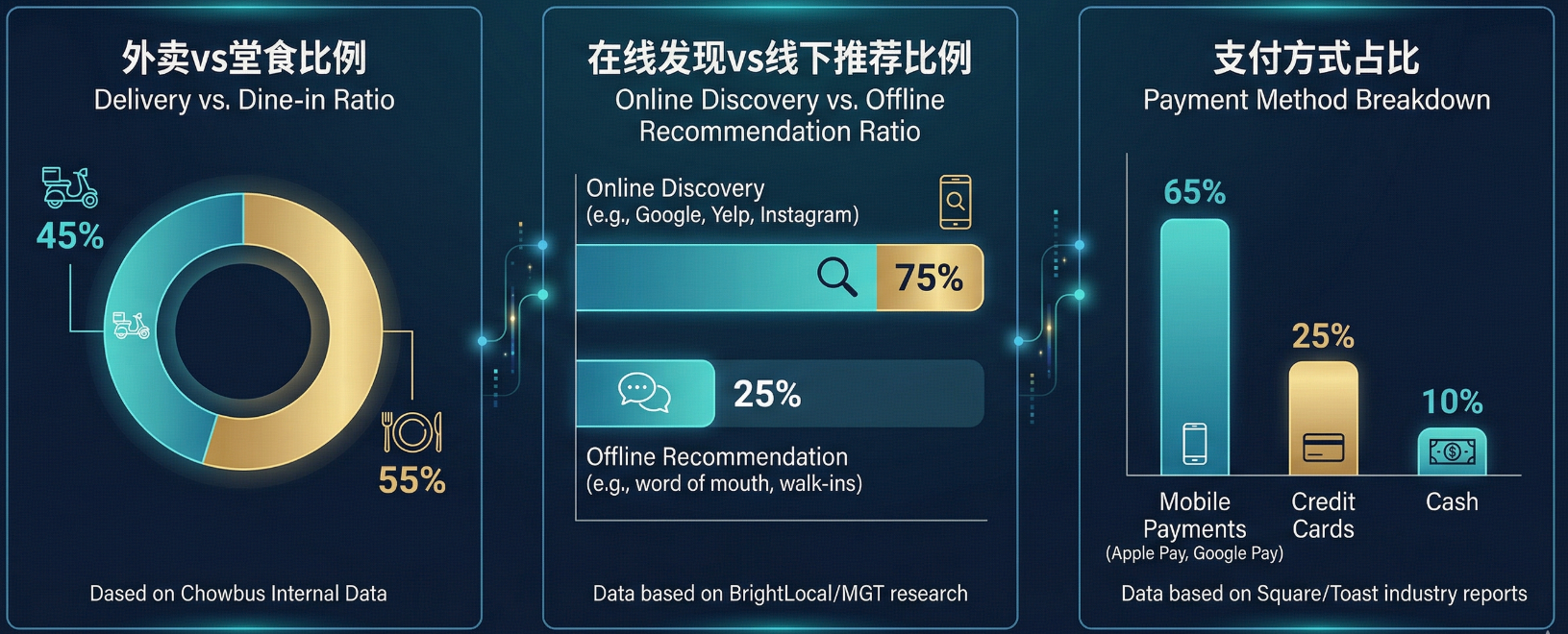 Consumption Behavior: High proportion of fast-casual and delivery; dine-in focuses more on experience.