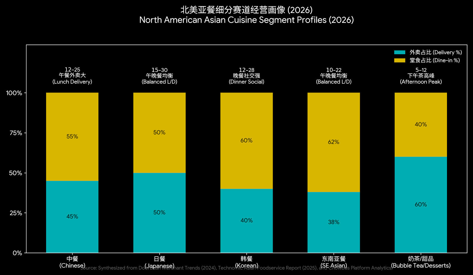 Source: Synthesized from DoorDash Merchant Trends (2024), Technomic Asian Foodservice Report (2025), and Chowbus Internal Platform Analytics.
