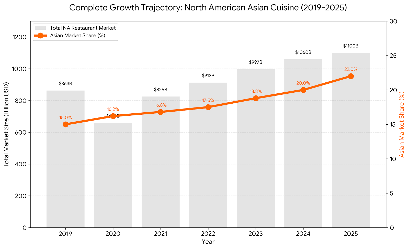 The North American restaurant industry is one of the world's largest consumer markets, with steady overall market size growth from 2019 to 2024. According to National Restaurant Association (NRA) data, regional Asian specialties are seeing a 6-8% CAGR.