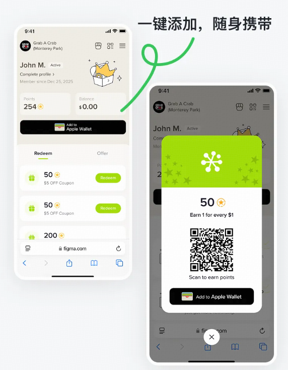 The new Loyalty Web features a deep, bi-directional integration with Apple Wallet, extending the value of the membership card from the phone screen to your entire brand ecosystem.